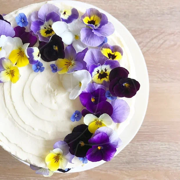 Добавьте к десерту настоящие цветы виолы, чтобы ваше оформление стало настоящим произведением искусства!