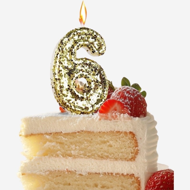 Доставка Свеча декоративная Цифра "6" Золотые пайетки из магазина в вашем городе: